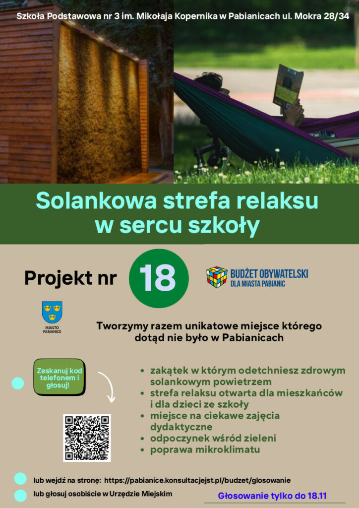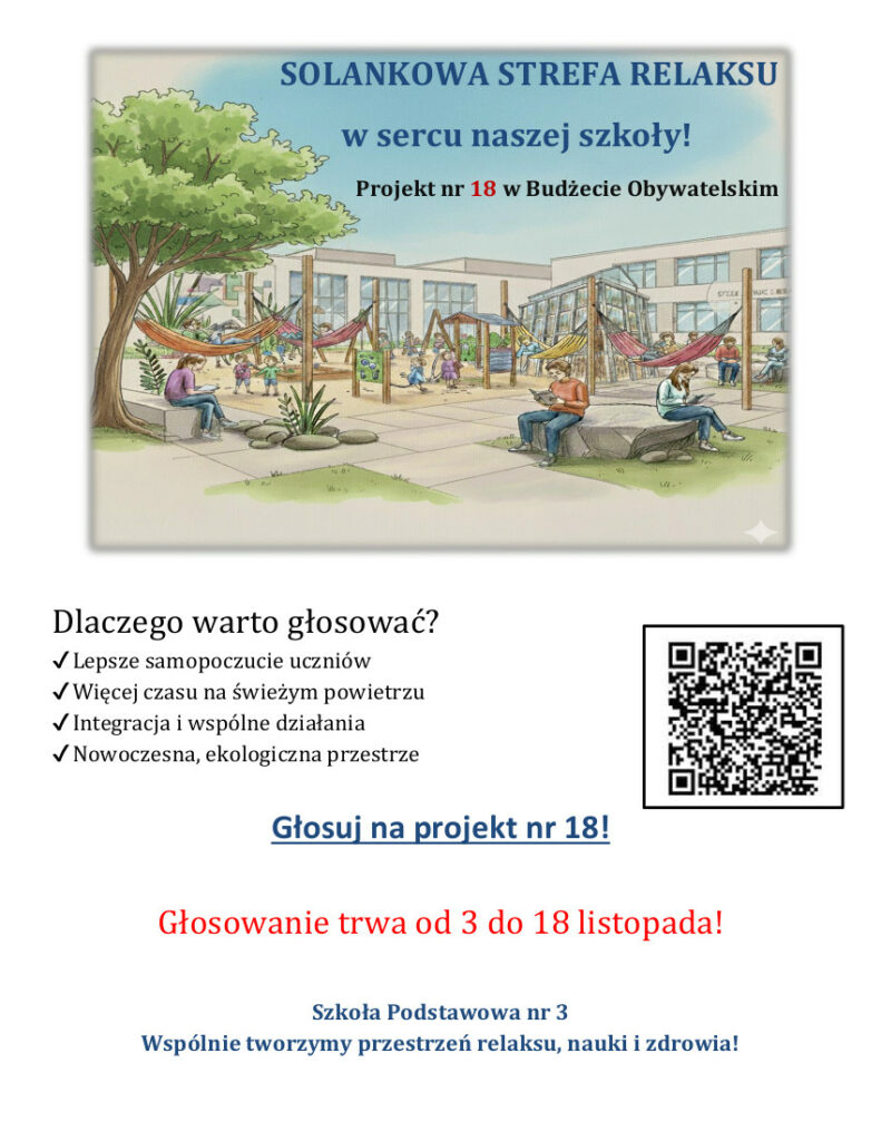 Mamy już wyniki konkursu na stworzenie plakatu, promującego projekt naszej szkoły do Budżetu Obywatelskiego: „Solankowa strefa relaksu w sercu szkoły”.